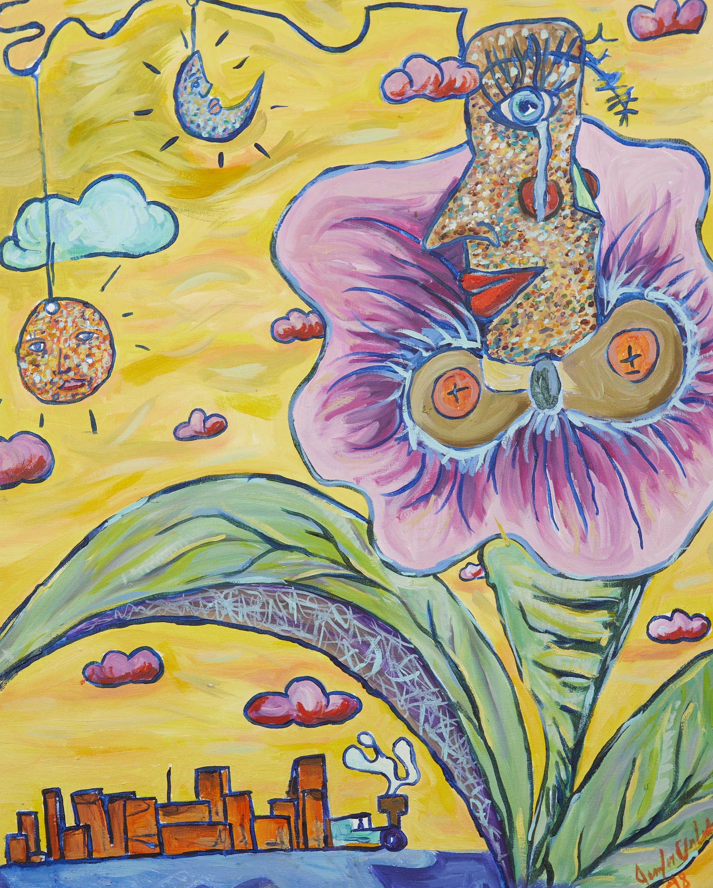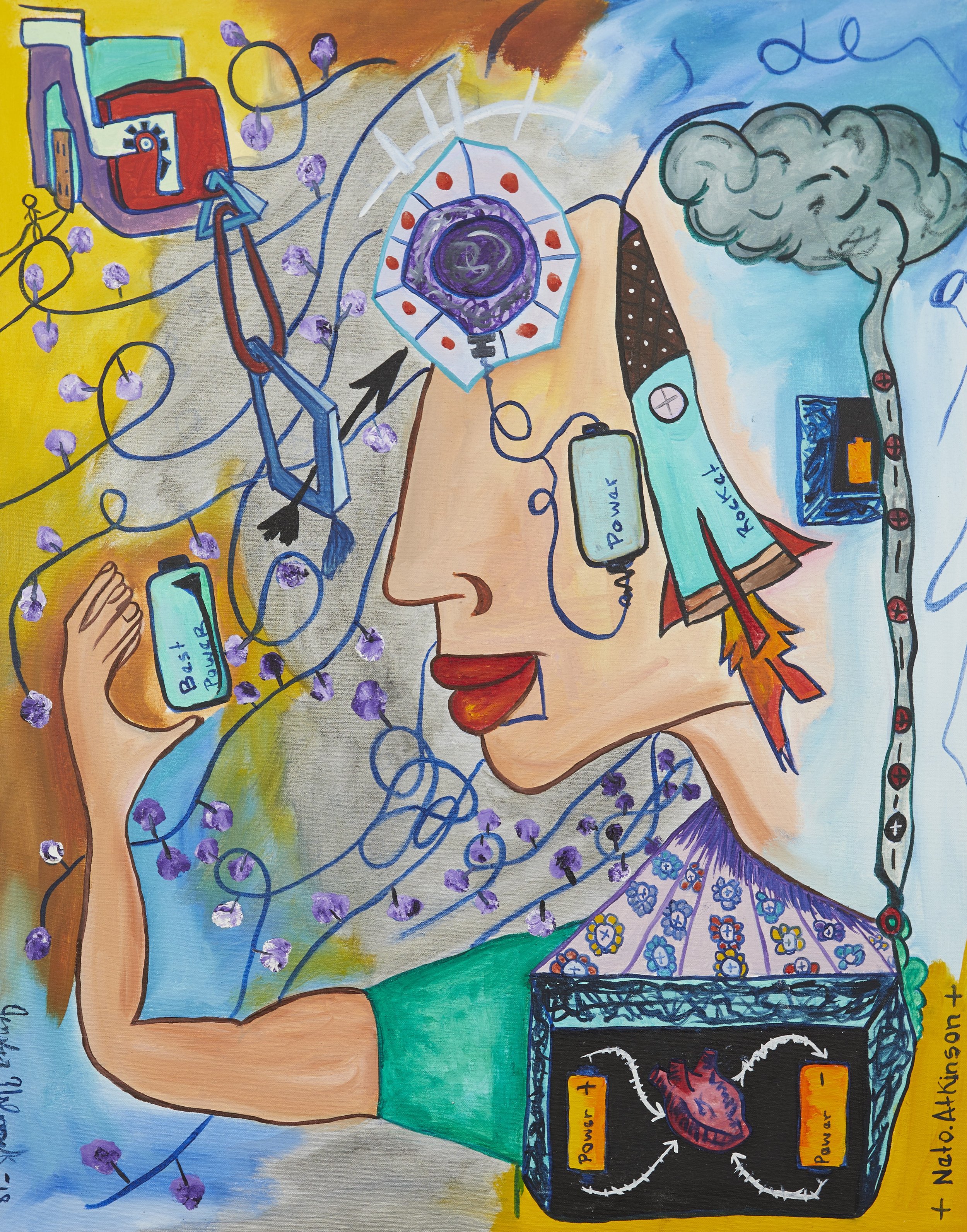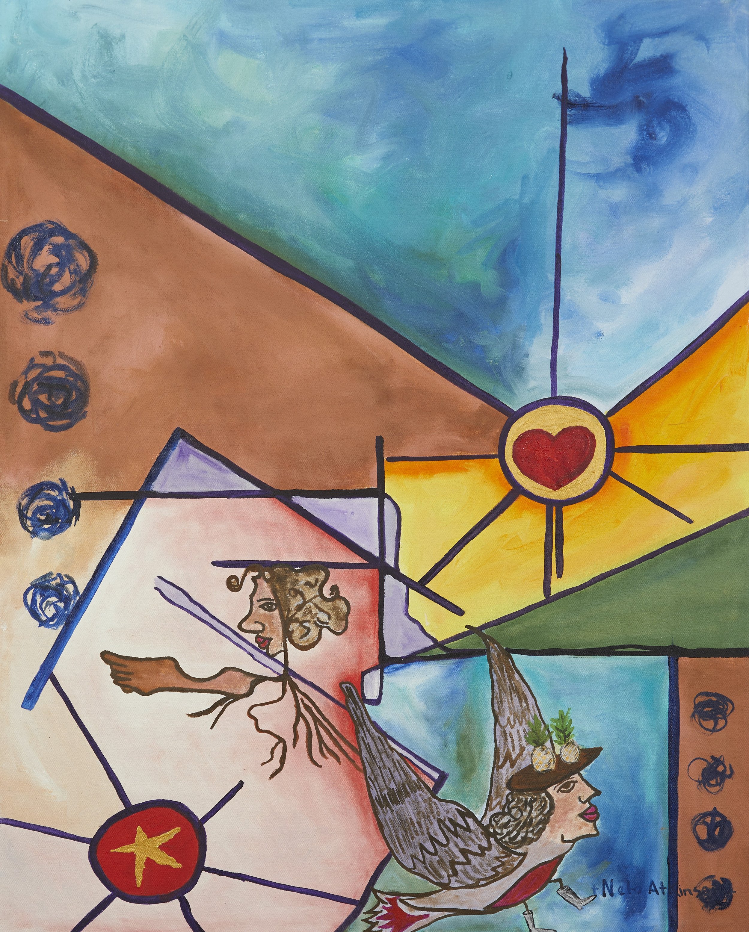 It is a 2018 series of paintings derived from Neto Atkinson’s coloring book, “Explore yourself discover your Potential”, created for his Integration Healing art-therapy practice. In collaboration with his wife, Jenny Urbanek, these sketches were transformed into immersive artworks. Their partnership embodies a shared visual language; vibrant, luminous, that reflects the alchemy of art-making and the power of self-discovery through creativity.